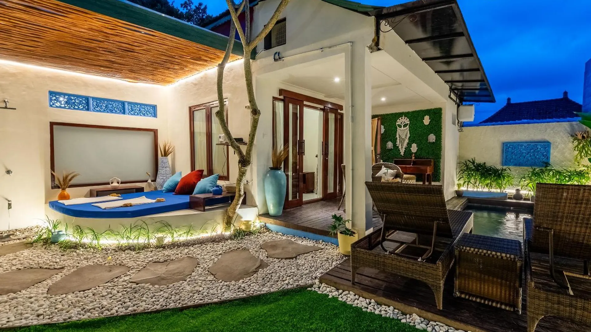 Garden Art Villa comprend un coin repas avec une bouilloire électrique, un réfrigérateur et de la vaisselle. Vous aurez la possibilité de dîner à China Moon Restaurant, situé à seulement 200 mètres. Bicyclettes peuvent être loués sur place, et vous pourrez également profiter d'une piscine privée.